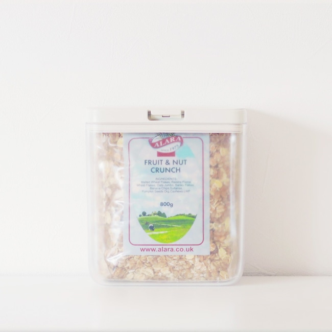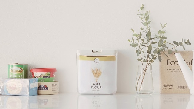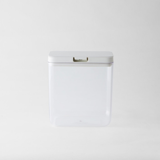 パッキンでしっかり閉まって湿気を防ぎ、ワンタッチで開く保存容器。