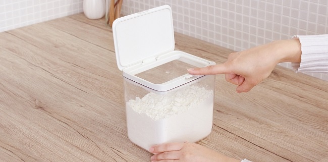 小麦粉1kgが袋ごとピッタリ入るサイズです。