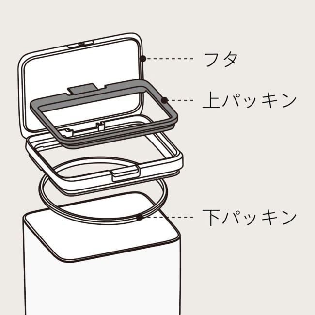 ●フタ・フタ枠・パッキン・ボタンの周りに汚れが付着するとフタが開閉しにくくなるので、定期的に水洗いし、水分を拭き取ってからお使いください。