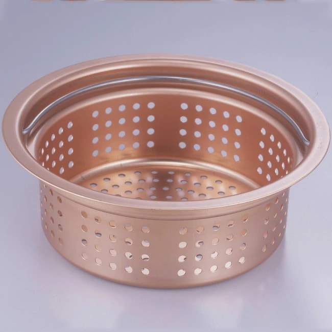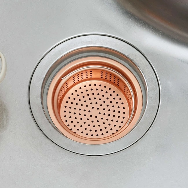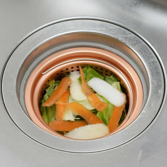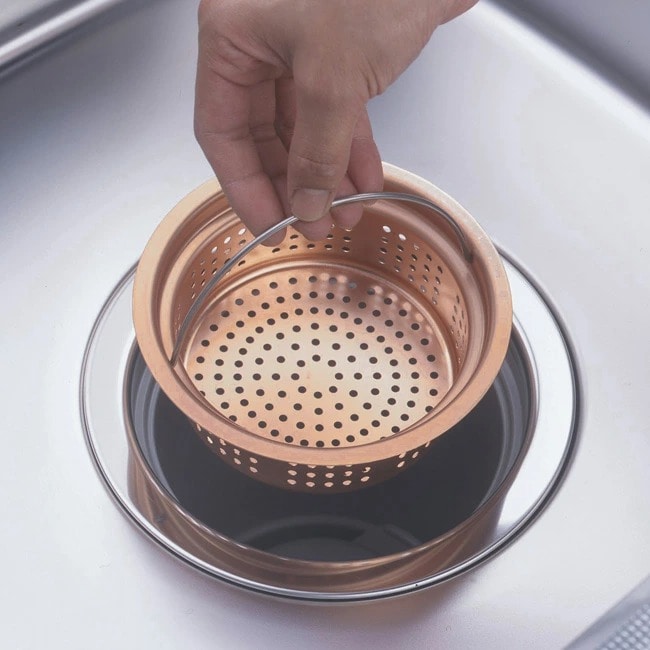 銅の殺菌作用でヌメリや悪臭を防ぎます。取手付きで取り出しも簡単です。※使用中時間の経過とともに、銅特有の黒ずみ色へ変化が出ます。