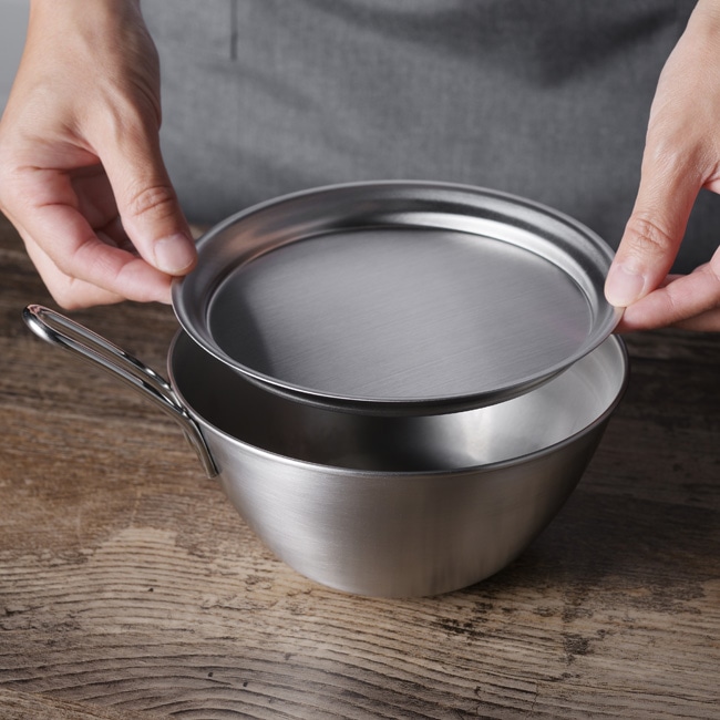 耐久性・耐食性に優れたステンレス製のトレーです。においや色がつきにくいので、肉や魚の下ごしらえに便利にお使い頂けます。同シリーズの16cm手付きボウルや浅型ザルにもぴったり。蓋や受け皿としてもご使用いただけます。食洗機対応で、お手入れ簡単。いつも衛生的にお使いいただけます。