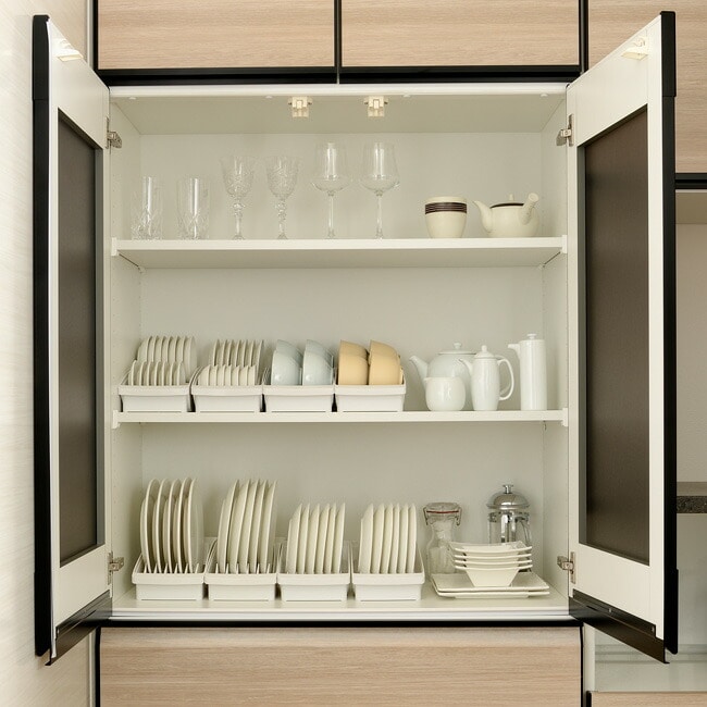 お皿を立てて収納することで見やすく、サッと取り出すことができます。