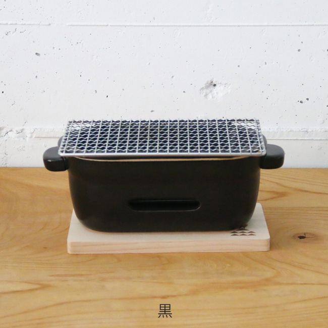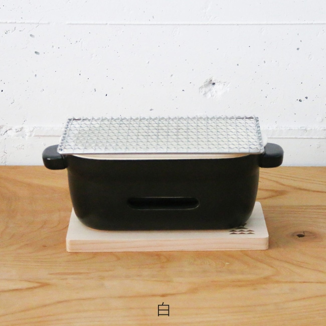 かもしか道具店 陶の炭火コンロ 角 3点セット ( 網 敷板 付き ) 選べる2色 白 黒 陶器 焼き鳥 焼き魚