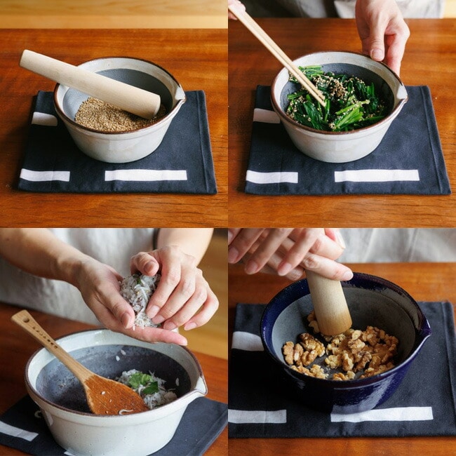 すり鉢といえばゴマをする調理器具というイメージの方が多いかと思いますが、その他にも様々な使い道があります。次はその例をいくつかご紹介します。