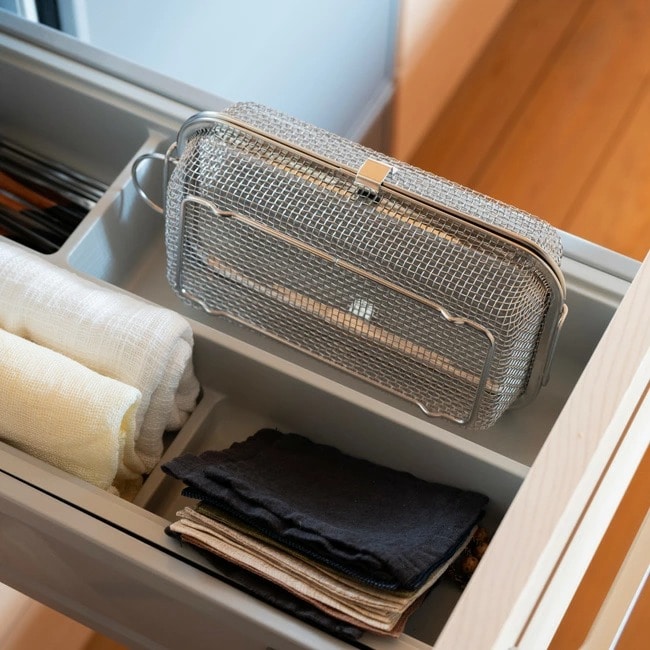 小物や食材がタオルに直接触れず衛生的。通気性も上がり、乾きやすさを手助け。