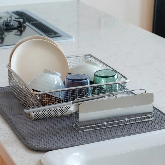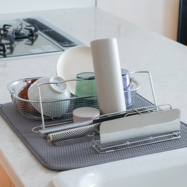 すっきり暮らすシリーズを組み合わせて使っても水切りマットの中ですっきり収まる。