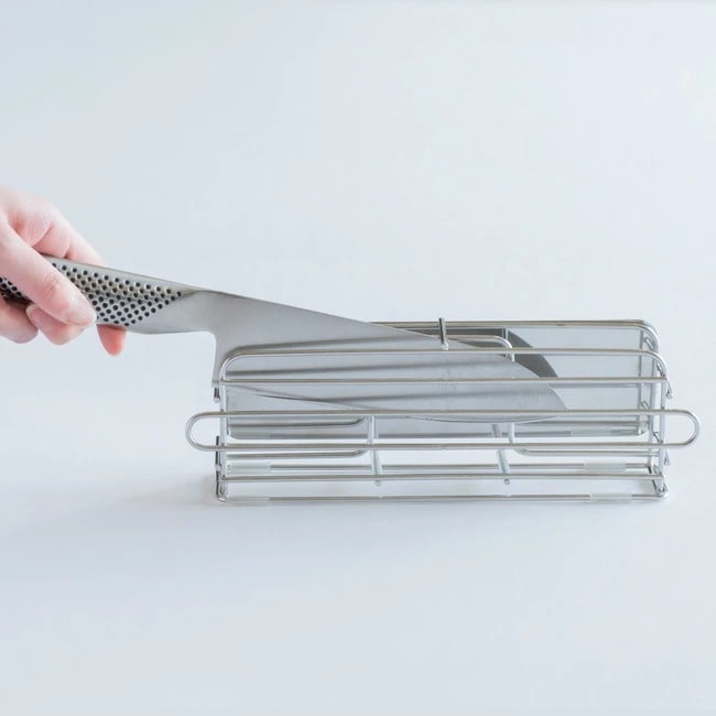 洗った後の包丁の場所を決めたら安定して、さらにすっきり。かさばらずシンプルなフォルムでそのまま置いても◎他のすっきり暮らす水切りかごと一緒に置いて乾かせます。
