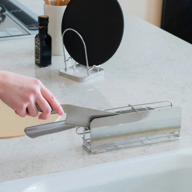 水切りかごの中では不安定で置き場所に困りがちな包丁の定位置に。