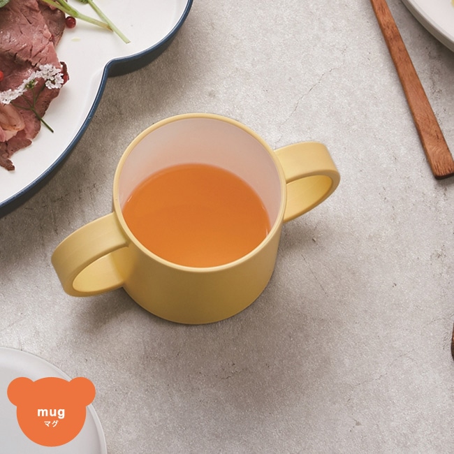 両手でしっかり持てるマグカップです。