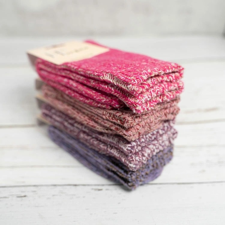 ミックスな色合いがきれいなウールソックス。暗くなりがちな寒い季節のコーデに合わせたいカラフルで可愛い靴下です。