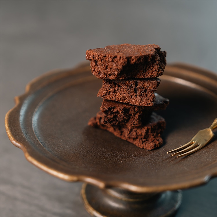 卵(国産)、チョコレート(カカオマス、砂糖、ココアバター、全粉乳)、米粉、グラニュー糖、マーガリン、ピュアココアパウダー/乳化剤、香料、アナトー色素、(一部に卵・乳成分・大豆を含む)