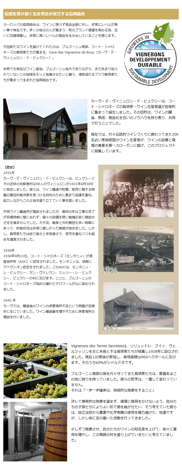 この地域をもっと発展させたいと願う、情熱溢れるブドウ栽培家たちが集まって生まれた協同組合がCave des Vignerons de Buxy(カーヴ・デ・ヴィニュロン・ド・ビュクシー)。