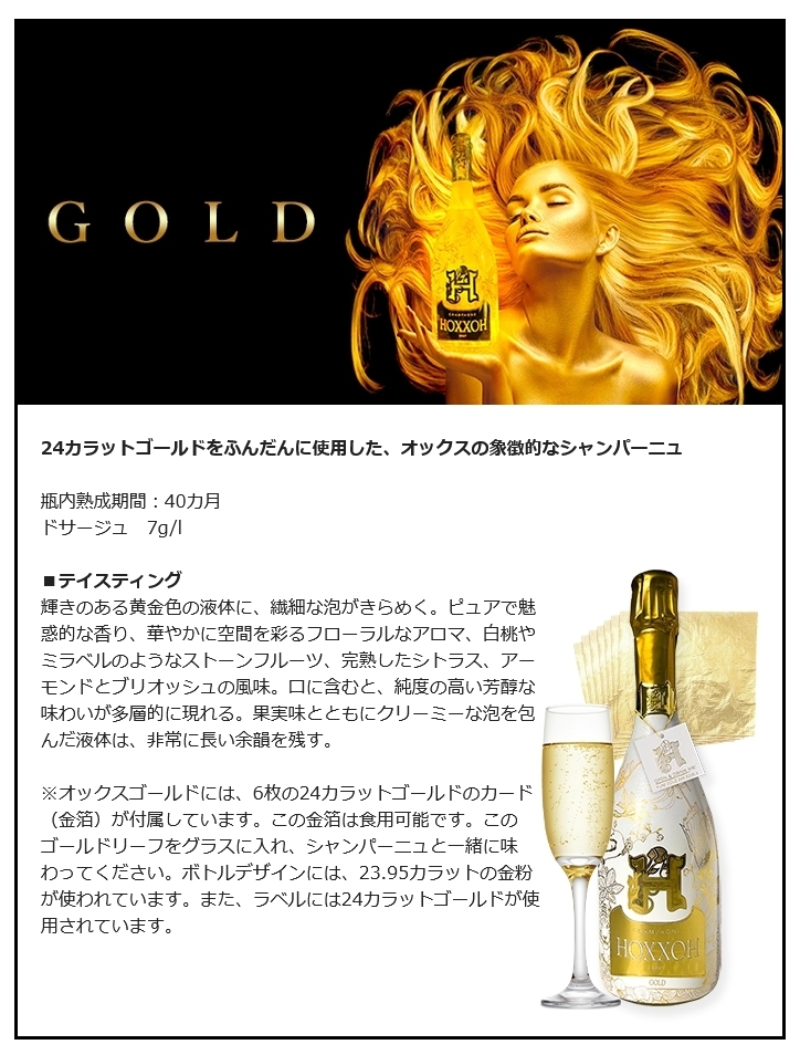 ゴールド シャンパン・白 辛口 750ml 化粧箱付き NV フランス シャンパーニュ シャルドネ スパークリングワイン HOXXOH オックス 2101030004186 【代引不可】