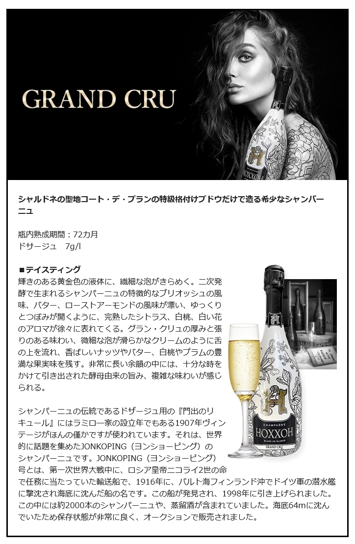 アルマン・ド・ブリニャック、エンジェル、ソウメイに続く、次世代のラグジュアリーシャンパーニュの筆頭として、今欧米で最も注目を集めているのが、このHOXXOHです。