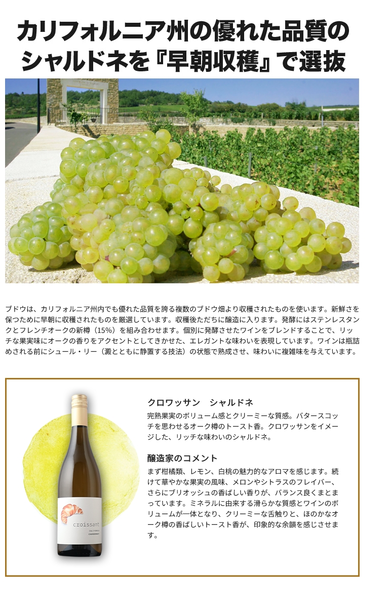 クロワッサン・シャルドネ 2021年 アメリカ カリフォルニア 白ワイン 辛口 750ml