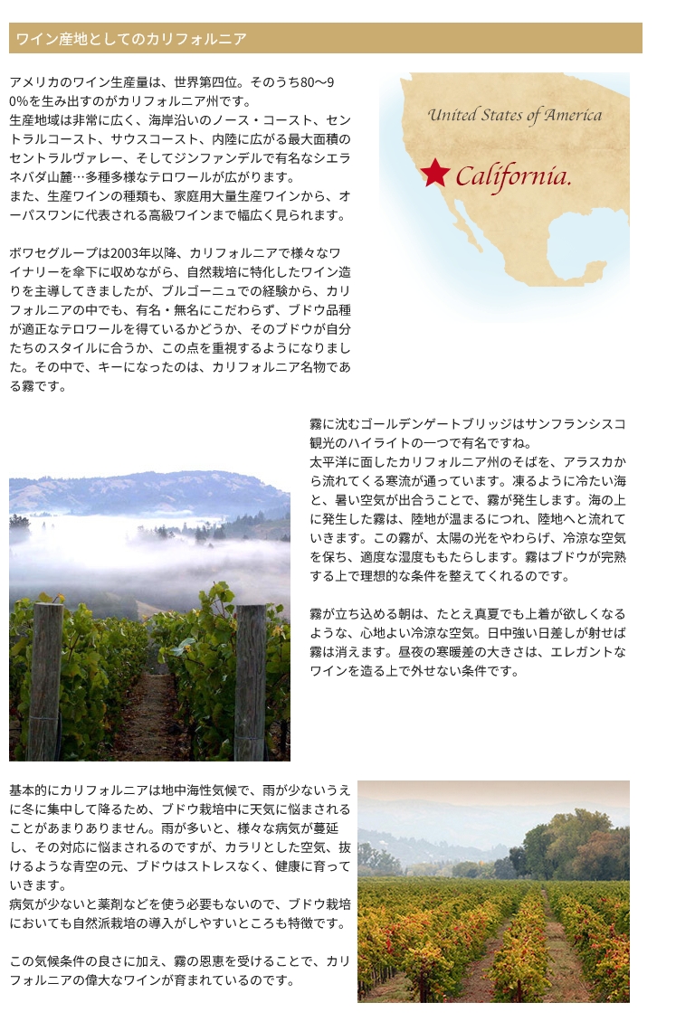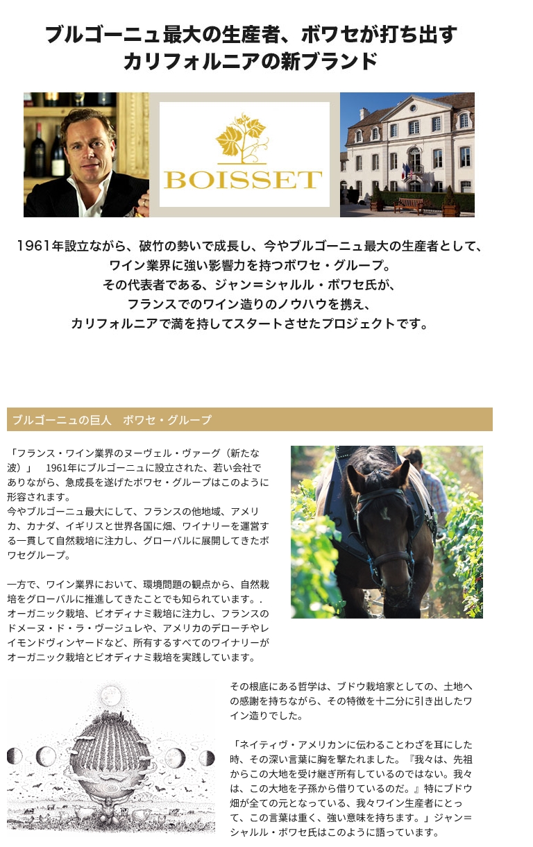 ■ブルゴーニュ最大の生産者、ボワセが打ち出すカリフォルニアの新ブランド