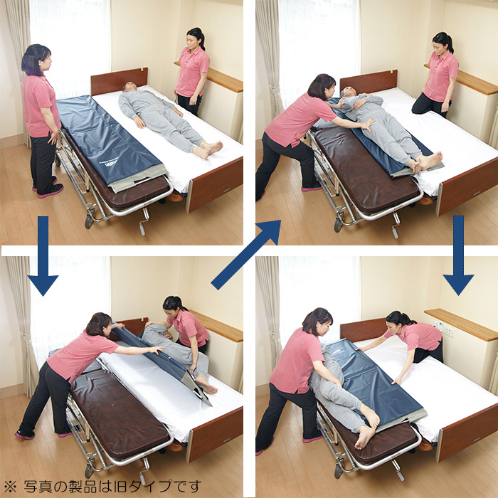 ベッドからリクライニング車いす、ストレッチャーや手術台への移乗を、抱きかかえずに行えます。