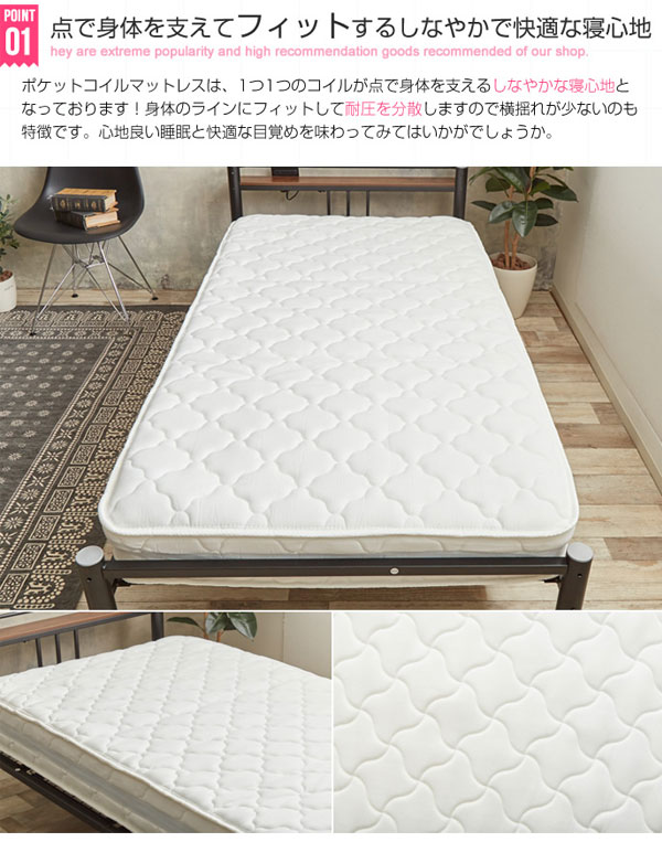 高密度アドバンスポケットコイルマットレス 99002-SG-WH ホワイト シングル