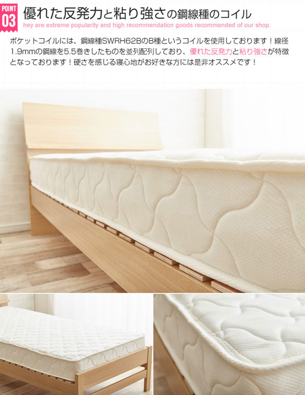検索キーワード:マットレス ポケットコイル シングル ベッド 寝具 マット 幅97cm コイル ニット生地 連続キルト オリジナル 高耐久 ORG