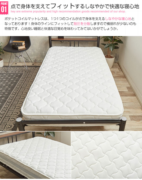 超高密度ハイグレードポケットコイルマットレス 99014-SD-WH WH セミダブル