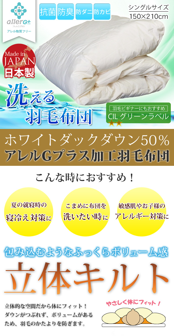 羽毛布団 シングル 洗える 抗菌 防臭 1年保証 日本製 春・夏用 アレルGプラス 掛け布団 肌掛け布団 羽毛肌布団 夏布団 肌布団 ホワイトダックダウン 布団 ふとん ダウンケット 防ダニ CIL 冷房対策 新生活 A748SZ 【代引不可】