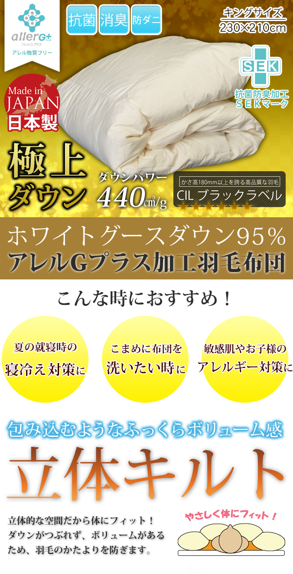 羽毛布団 キング 洗える グースダウン 95% 1年保証 日本製 抗菌 防臭 春・夏用 アレルGプラス 掛け布団 肌掛け布団 羽毛肌布団 夏布団 肌布団 ふとん 布団 ダウンケット 極上ダウン CIL 冷房対策 新生活 A770KZ 【代引不可】