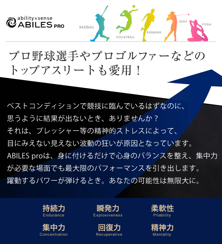 ABILES proは、身に付けるだけで心身のバランスを整え、集中力が必要な場面でも最大限のパフォーマンスを引き出します。