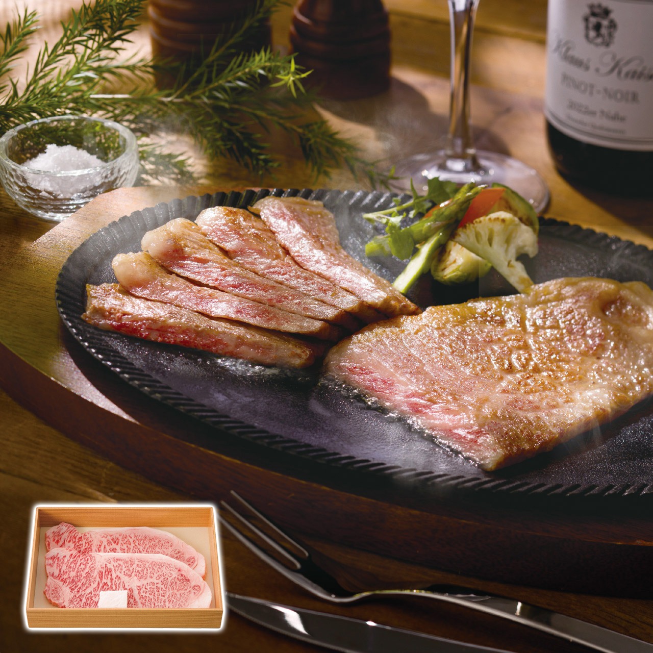 最高ランクのA5等級の松阪牛のサーロインをご用意いたしました。全国から優秀な血統の子牛を選び抜き、約3年間、農家の手で1頭1頭手塩にかけて育てられます。きめ細やかな霜降りは、まさに「肉の芸術品」。口に入れた瞬間のとろけるような食感をぜひご賞味ください。