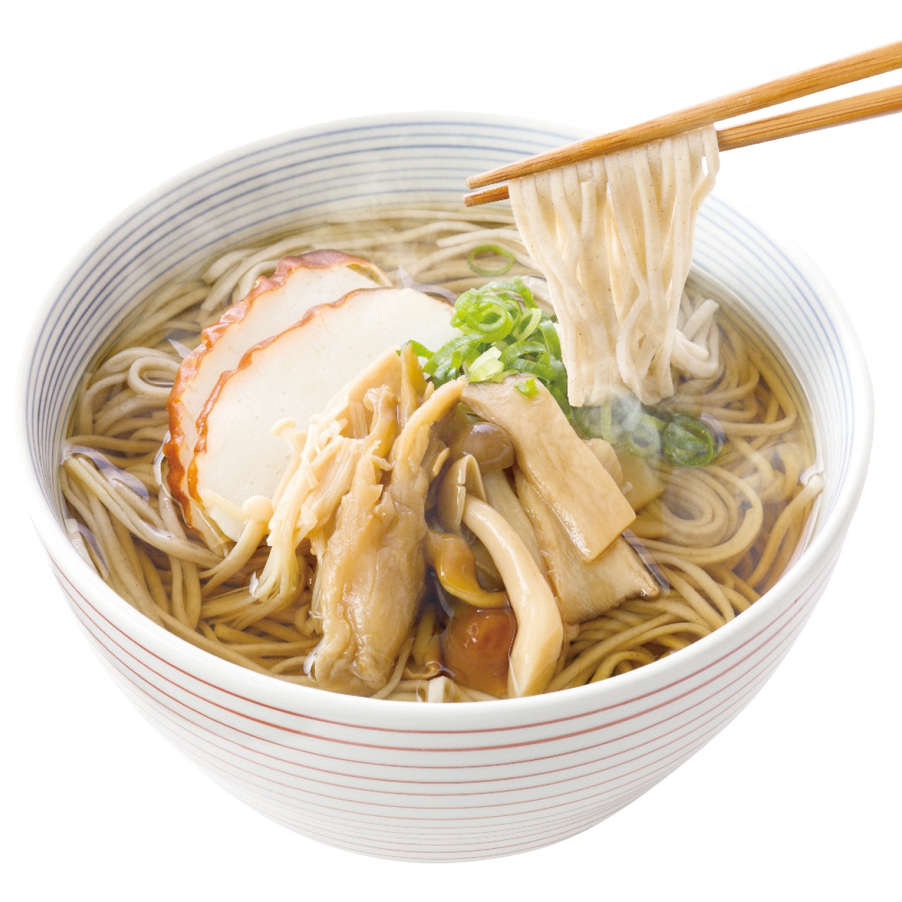 現品サイズ・内容:半生そば100g(八割4袋・五割2袋)・そば屋のそば茶120g×1袋・ごまくるみ味噌つゆ2倍濃縮・信州そばつゆ3倍濃縮各1瓶・各200ml・おいしいきのこ320g×1箱