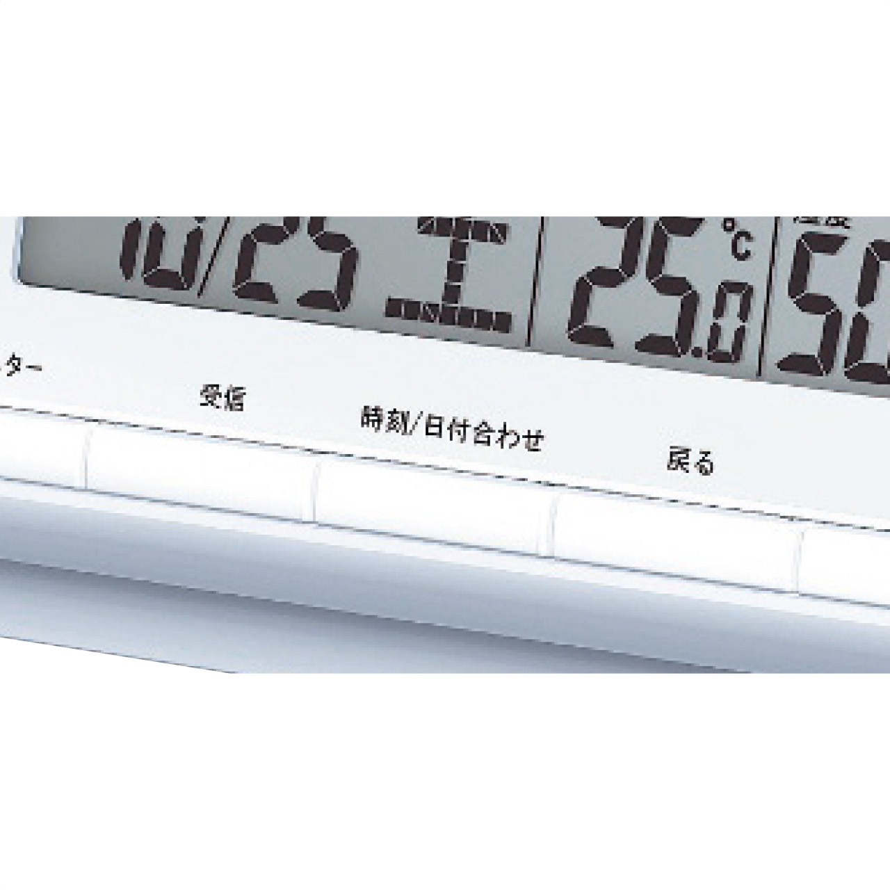 電波修正機能(受信OFF機能つき)電子音アラームスヌーズつきライトつきフルオートカレンダー機能温湿度表示
