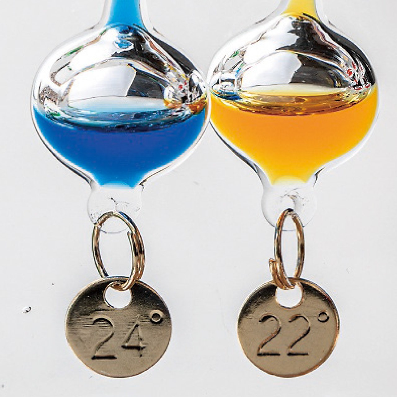 浮いているガラス球体の一番数値の低いプレート=温度