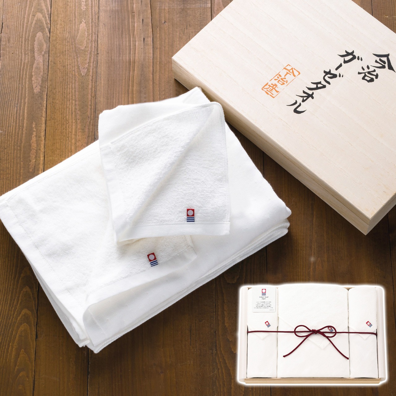 現品サイズ・内容:70×130cm大判バスタオル1枚・34×80cmフェイスタオル1枚・34×36cmウォッシュタオル1枚・綿100%・[日本製]