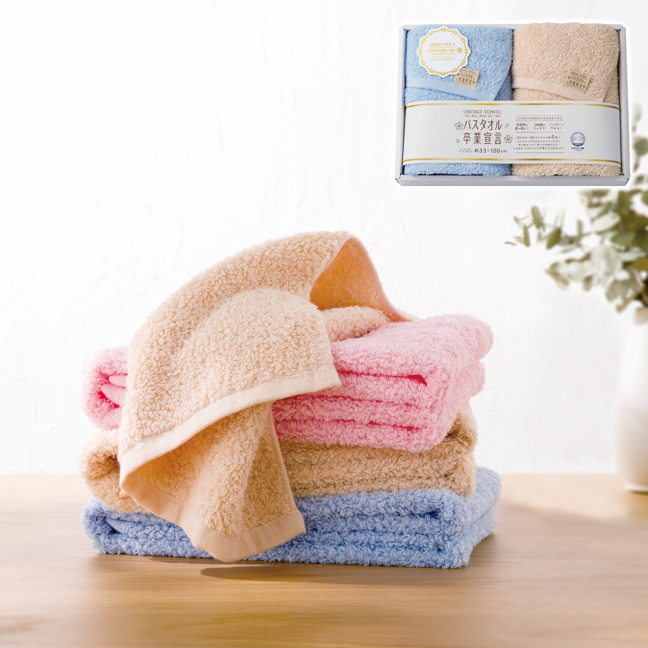 ロングフェイスタオル 2枚セット ブルー×モカ バスタオル卒業宣言 ギフト プレゼント 贈り物 贈呈 ご褒美 【代引不可】