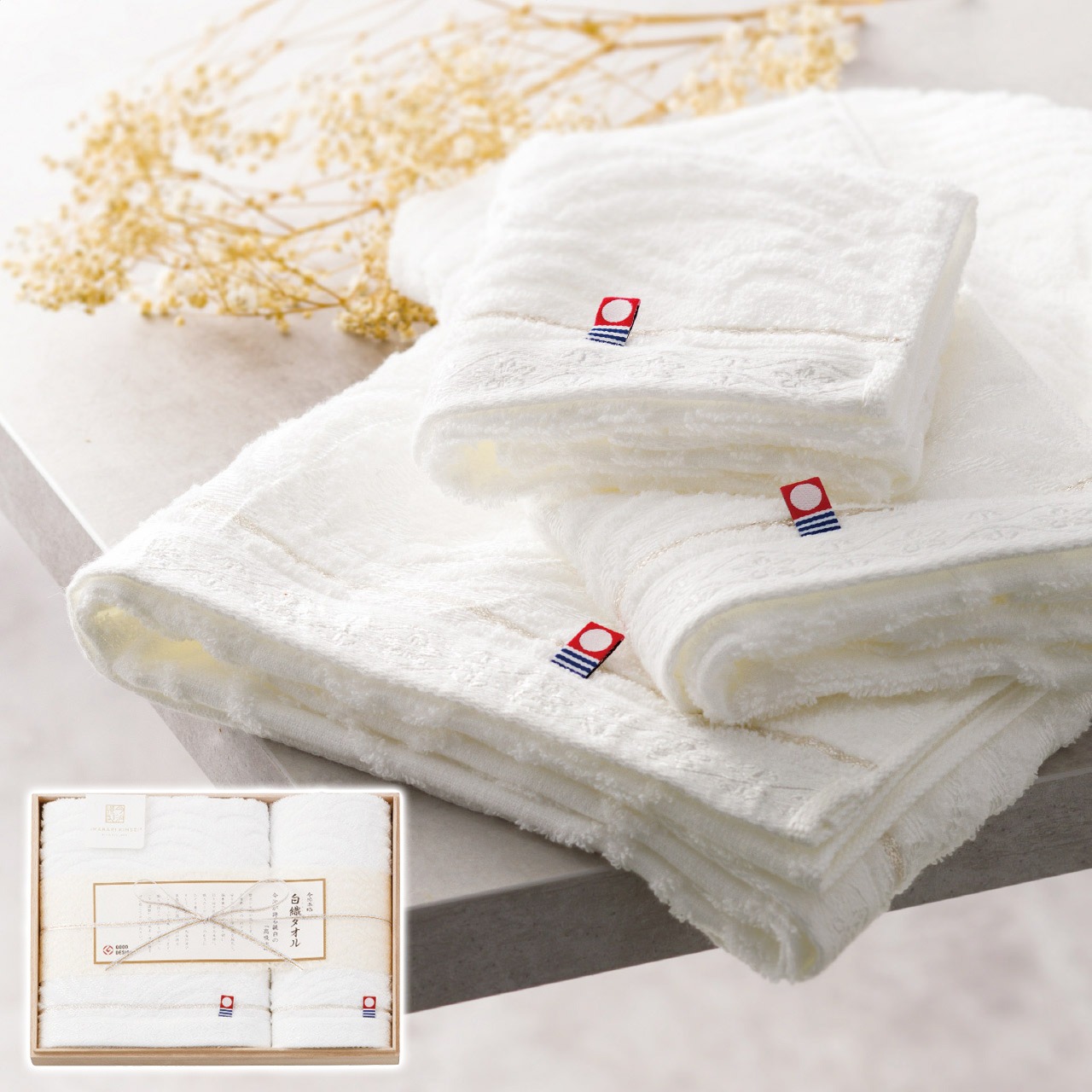 現品サイズ・内容:33×75cmフェイスタオル1枚・31×33cmウォッシュタオル1枚・綿100%・[日本製]