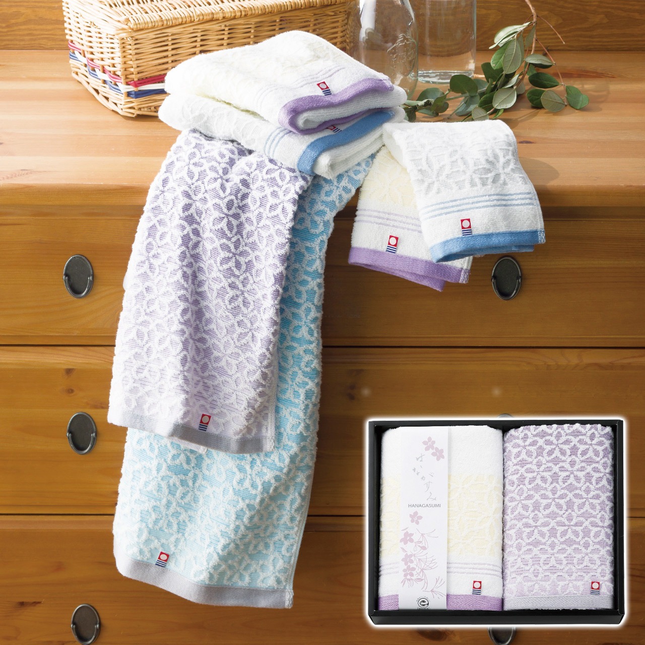 フェイスタオル 2枚セット パープル はながすみ ギフト プレゼント 贈り物 贈呈 ご褒美 【代引不可】