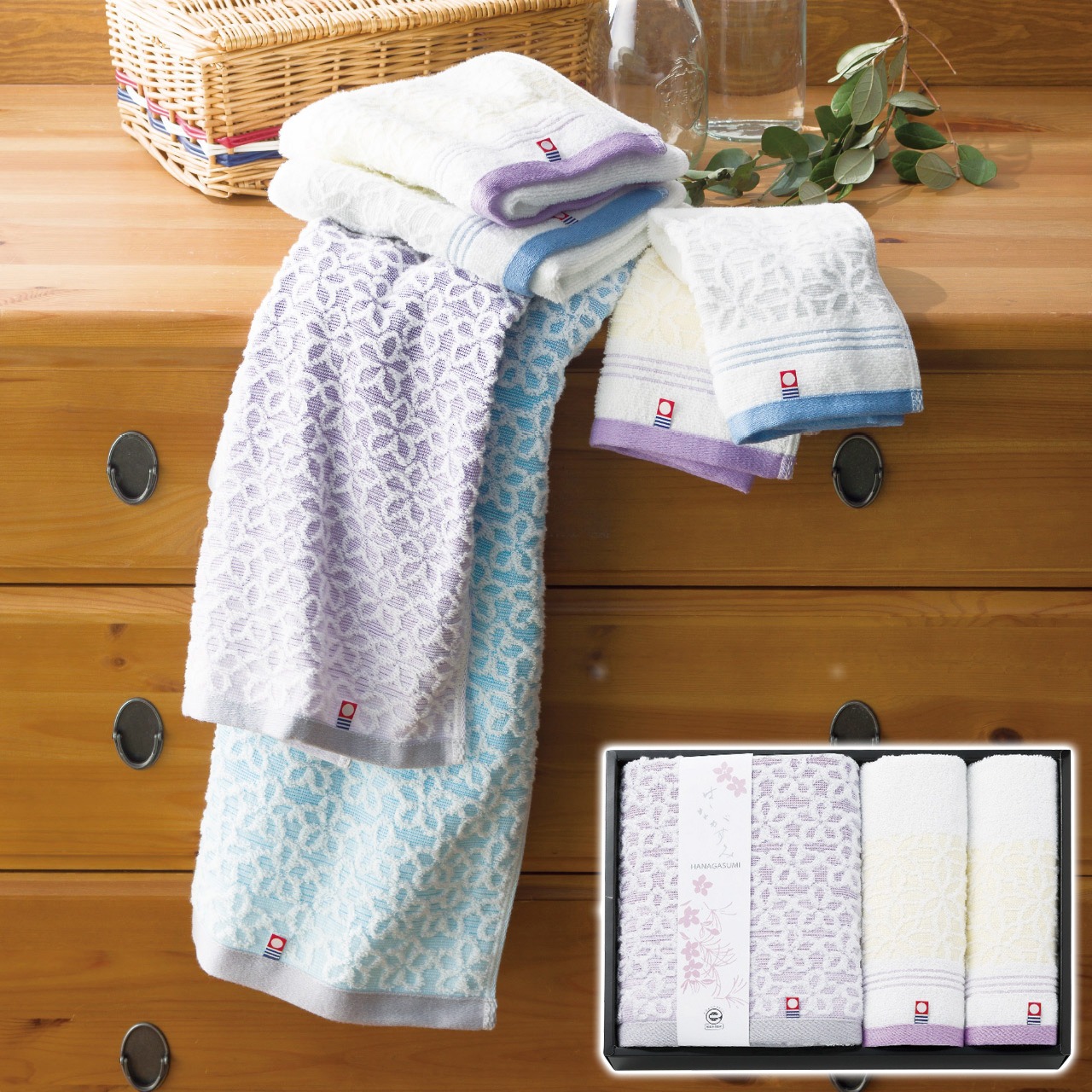 バス・ウォッシュタオルセット パープル はながすみ ギフト プレゼント 贈り物 贈呈 ご褒美 【代引不可】