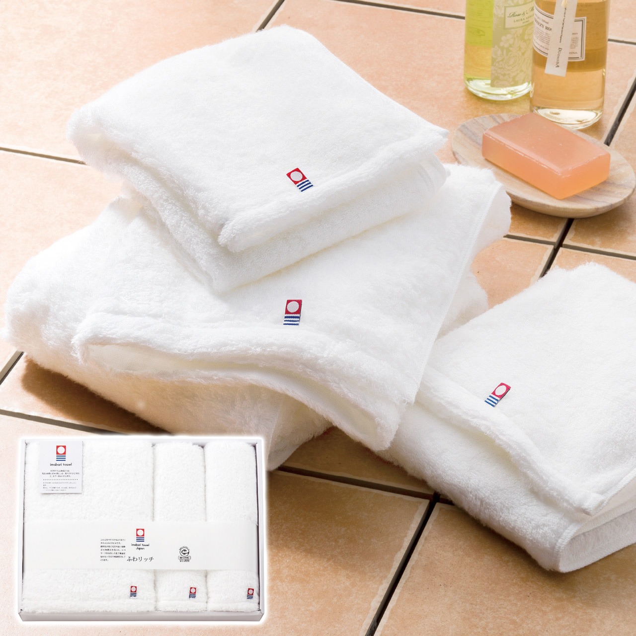 現品サイズ・内容:60×120cmバスタオル1枚・34×80cmフェイスタオル2枚・綿100%・[日本製]
