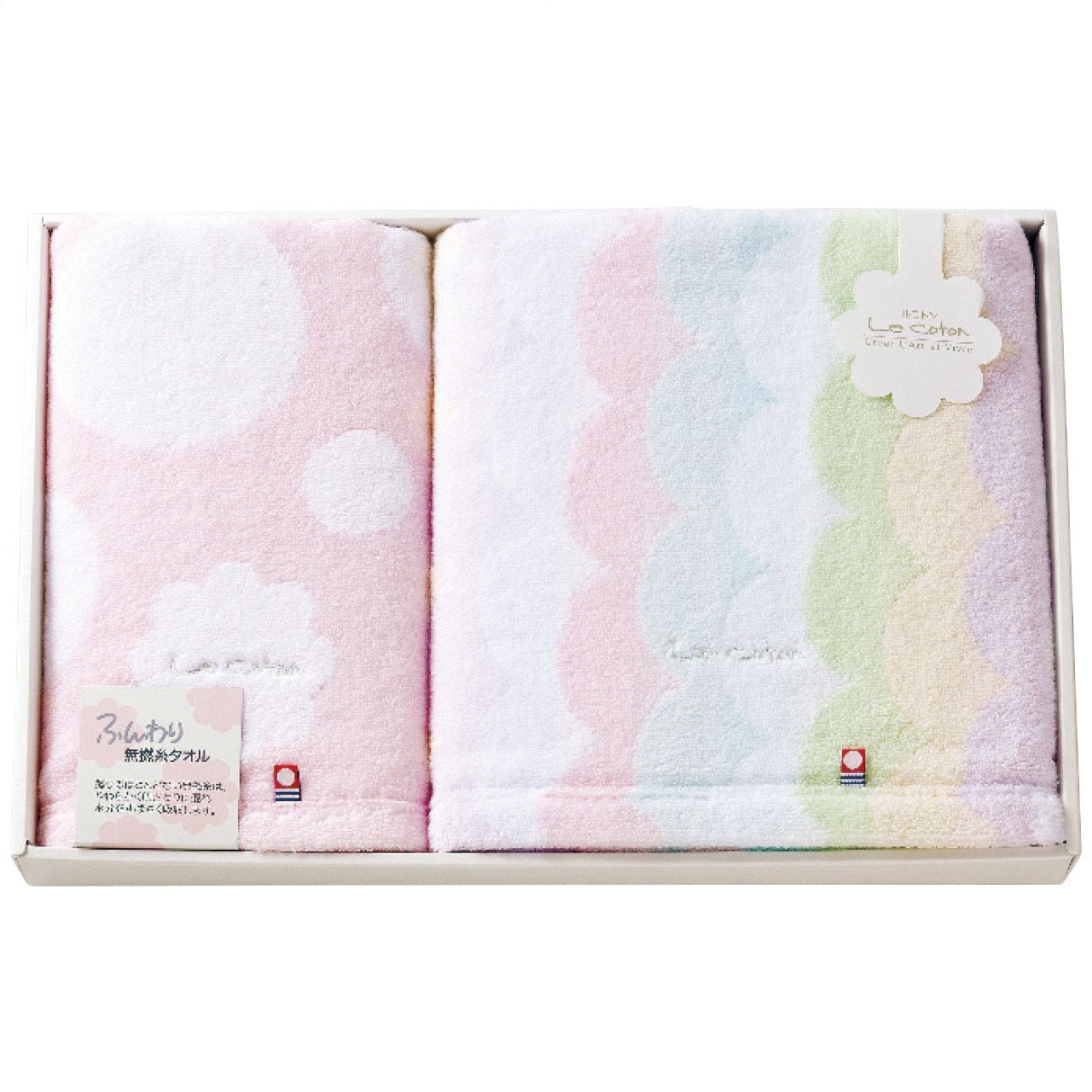 現品サイズ・内容:60×120cmバスタオル1枚・34×80cmフェイスタオル1枚・綿100%・[日本製]