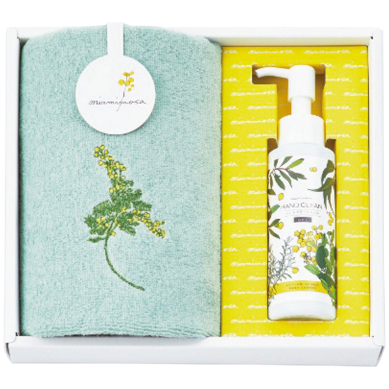 ウォッシュタオル&ハンドクリーンジェルセット グリーン ミアミモザ ギフト プレゼント 贈り物 贈呈 ご褒美 【代引不可】