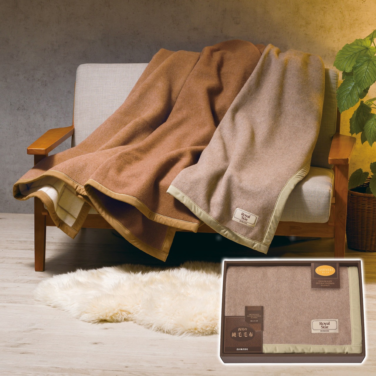 なめらかな肌触りと上品な光沢を持つ繊維の宝石と呼ばれるカシミヤ100%の毛布です。
