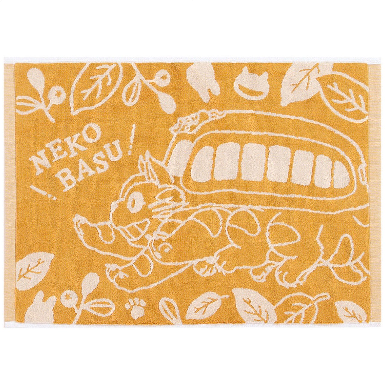 森の中をどんどん走っていくネコバスの線画が楽しいタオル地のバスマット。