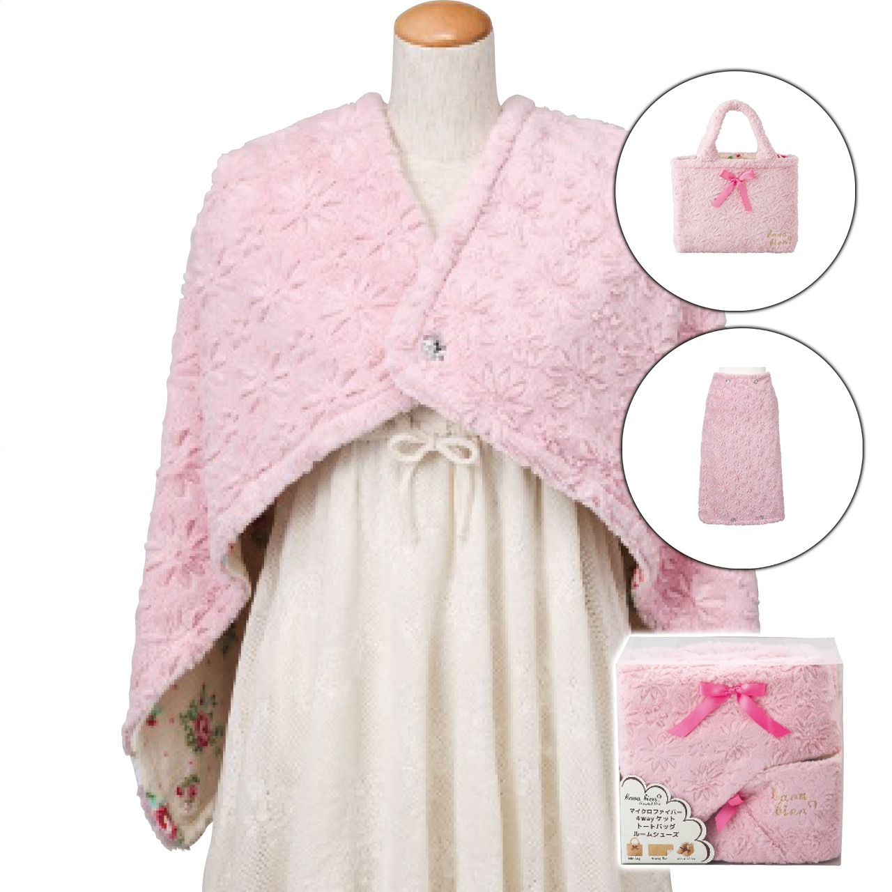 マイクロファイバー ルームシューズ・バッグ・4ウェイケットセット ピンク サ・ヴァ・ビアン ギフト プレゼント 贈り物 贈呈 ご褒美 【代引不可】