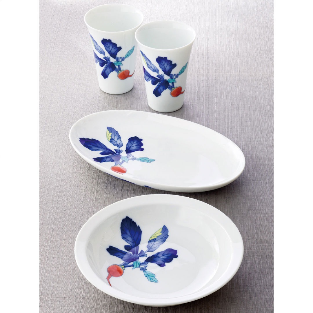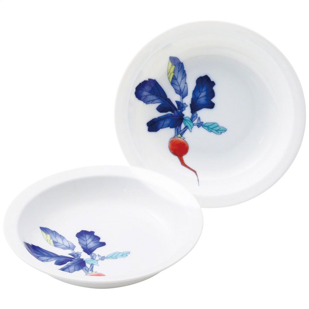 有田焼の代表的なモチーフで古くから様々な料理に使用されてきた食材の一つ「かぶら」を赤絵で上品に描いたペアマルチプレートです。