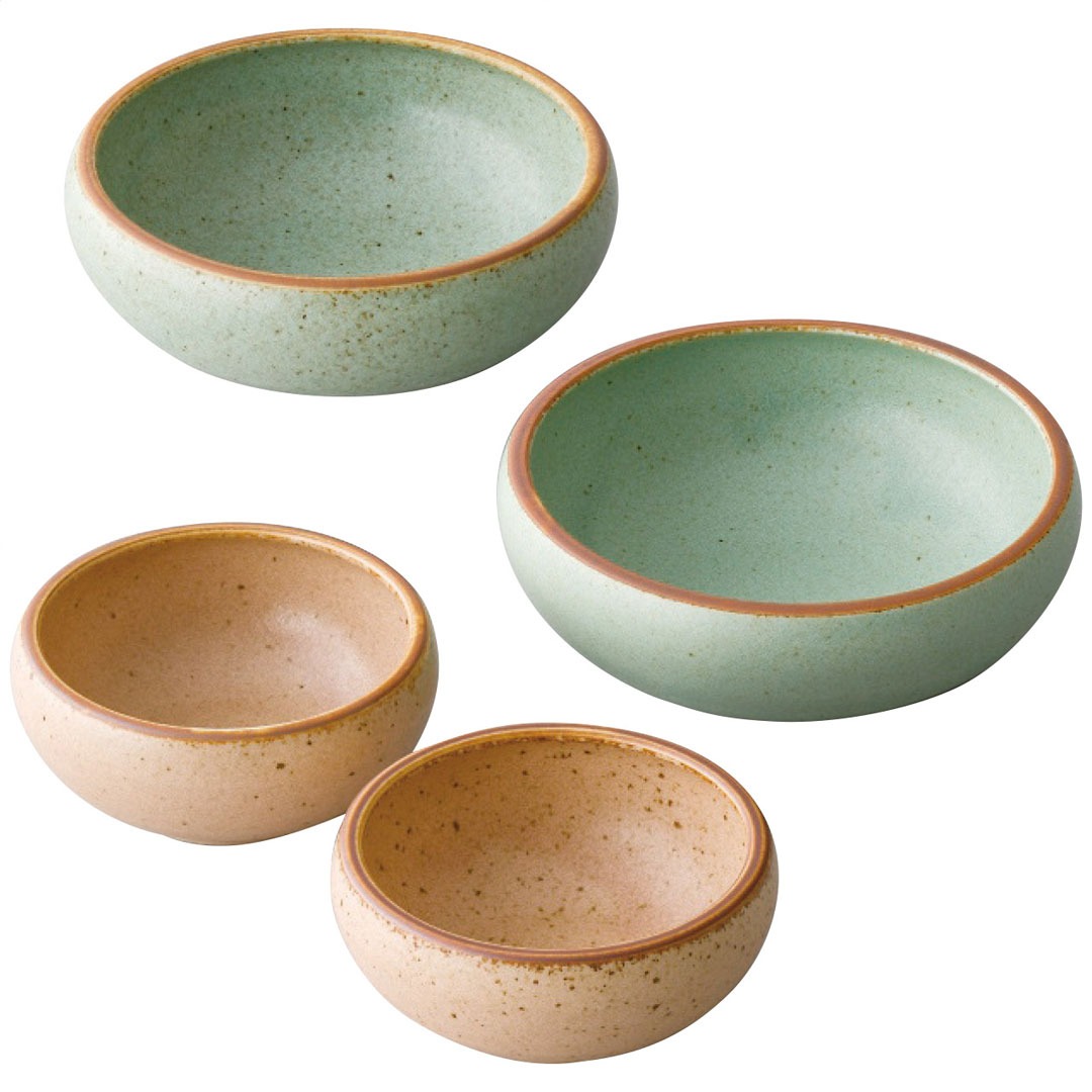 現品サイズ・内容:直径14cm高さ5cmボウル(M)・直径10cm高さ4.5cmボウル(S)各2客・磁器・[日本製]