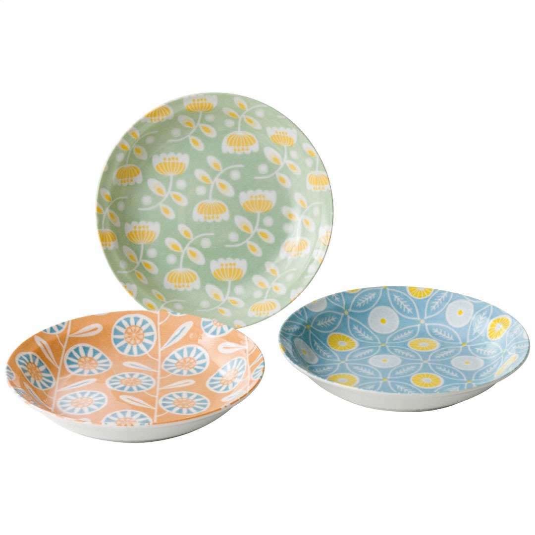 現品サイズ・内容:直径22cm高さ4cmプレート3枚(3柄)・磁器・[日本製]