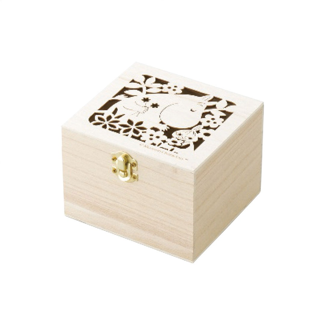 ムーミンの透かし彫りが繊細で美しい木箱とマグのセットです。
