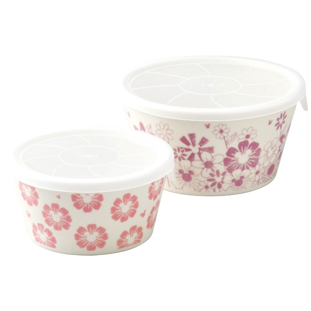 現品サイズ・内容:直径14cm高さ7cm容量約600mlレンジパック(M)・直径11.5cm高さ6cm容量約300mlレンジパック(S)各1客・磁器・フタ:ポリプロピレン・[日本製]