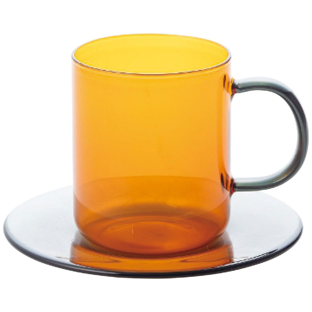 耐熱カラーガラスマグ&ソーサーセット アンバー ギフト プレゼント 贈り物 贈呈 ご褒美 【代引不可】