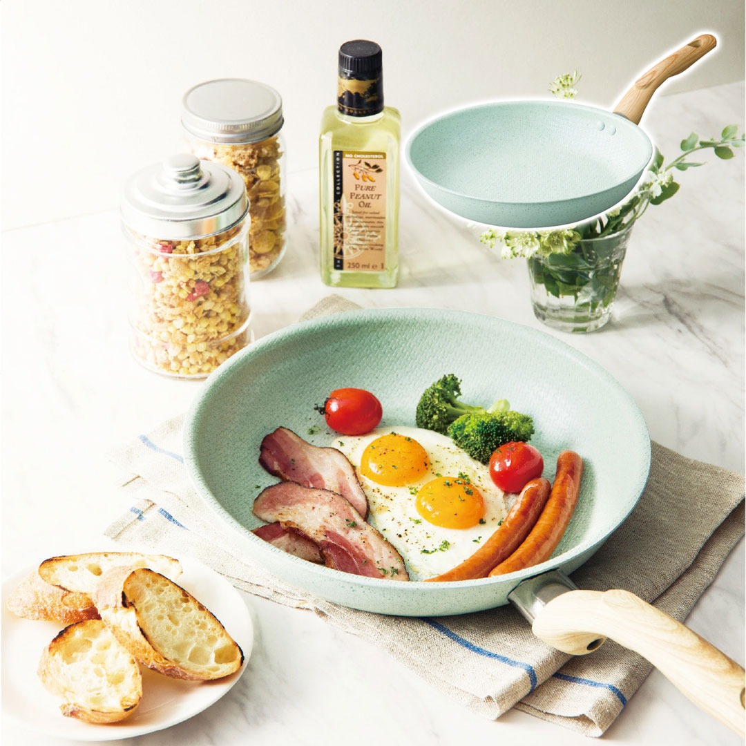 現品サイズ・内容:直径28cmフライパン1個・重量780g・本体:アルミニウム合金(内、外面:セラミック塗膜加工)(翡翠石、ダイヤモンド粉末含有)・底部:ステンレス鋼・底厚2.6mm・ハンドル:フェノール樹脂・[韓国製]