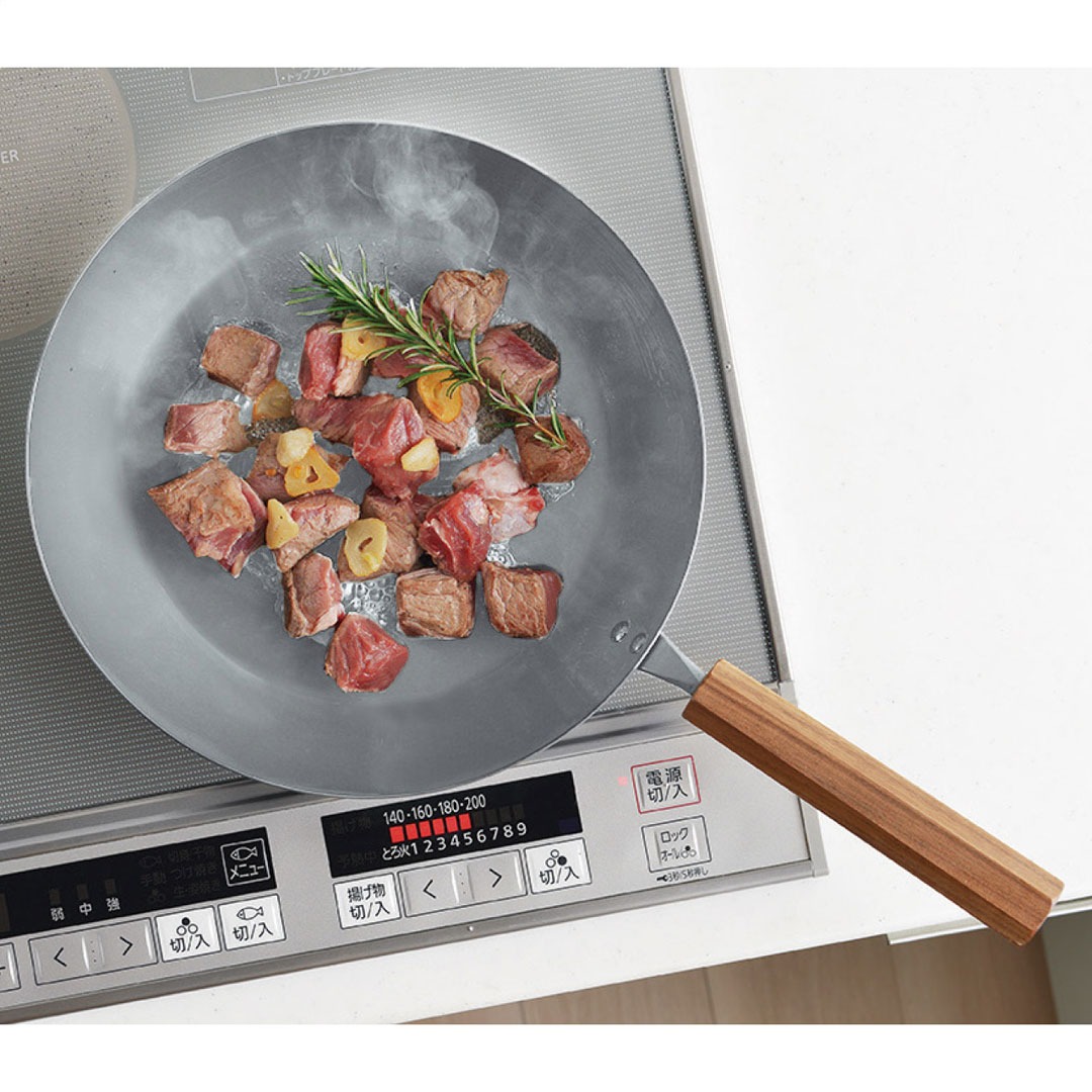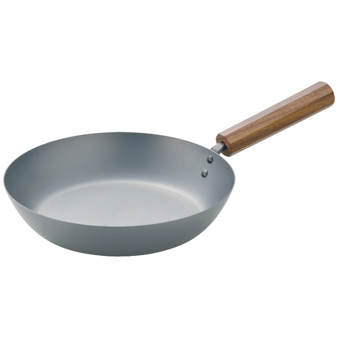 現品サイズ・内容:直径24cmフライパン1個・本体:鉄(窒化処理)・ハンドル:ウォールナット天然木(ウレタンクリア塗装)・[日本製]